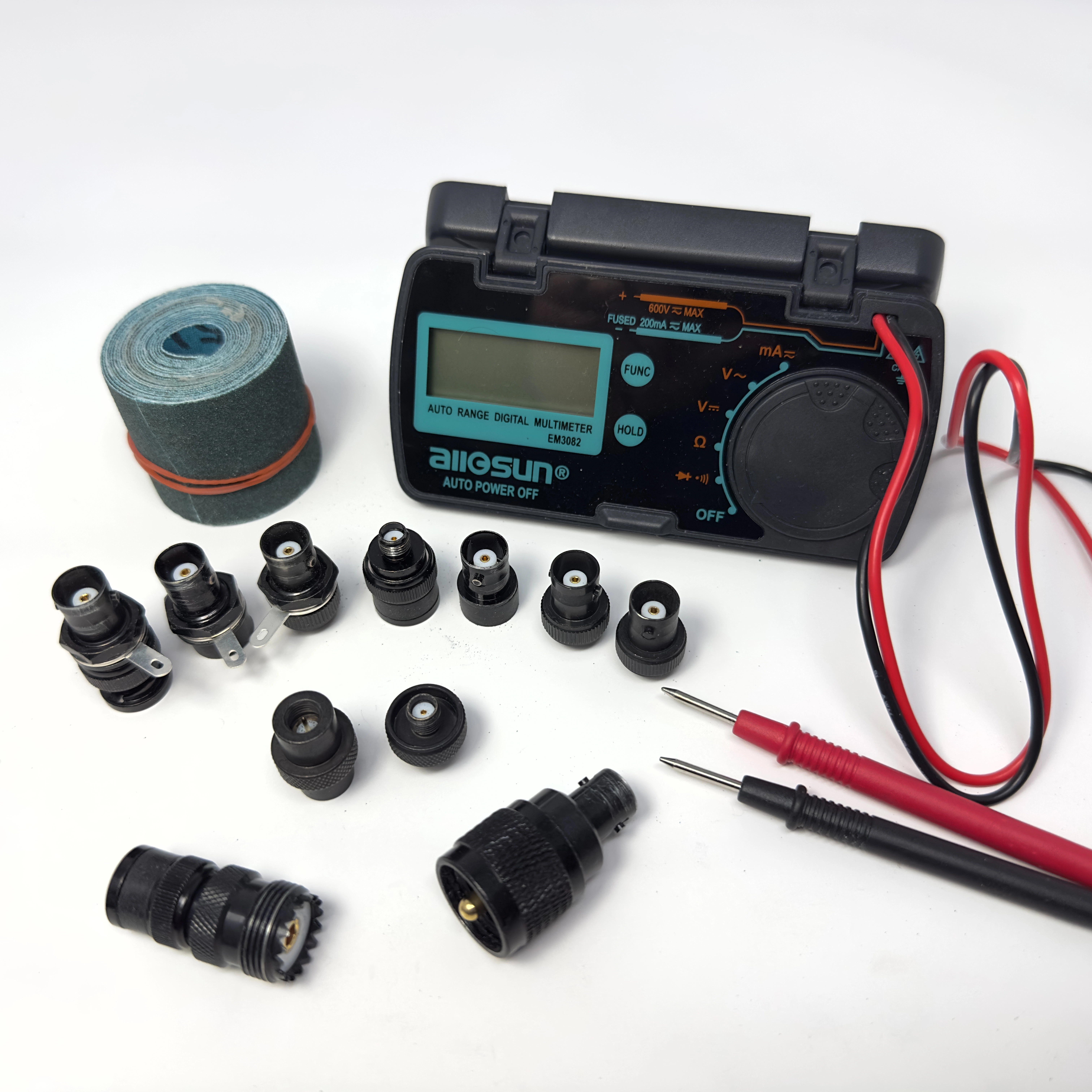 - PL-259 to BNC-F — particularly tricky; some parts can’t be reached with sandpaper, so testing is recommended