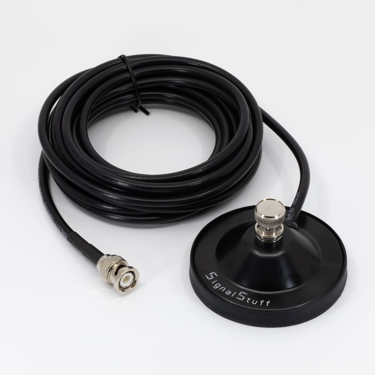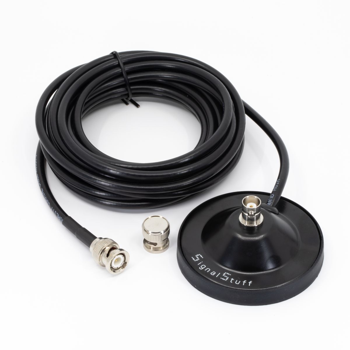The BNC Mag mount includes 16 feet (5 meters) of high-quality RG-58 coax with a BNC male connector.